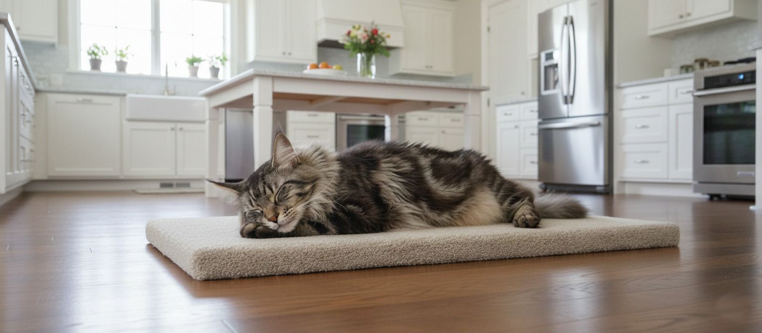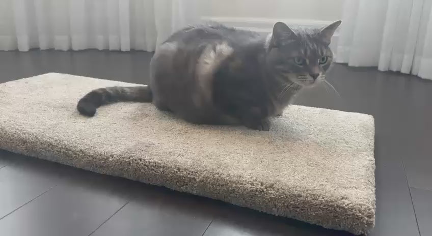 Give your cat their own personal patch of comfort with the Kittie Island, a cozy, dedicated space designed just for lounging, napping, and total relaxation. Cats naturally love the soft, familiar feel of carpet, and this plush 37" x 17" island gives them a warm, comforting surface they’ll instinctively gravitate toward—especially in homes with only hardwood, tile, or laminate floors. At just 1.5" high, it’s easy for cats of all ages to step onto, making it the perfect spot to stretch out, curl up, or settle in for a long, peaceful nap. Place it anywhere in your home and watch it become your cat’s favourite destination, a simple upgrade that delivers big comfort and even bigger purrs.